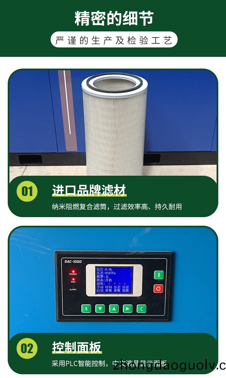 大風量、智能控(kong)製、自動衇衝清灰、納米阻燃覆膜濾筩